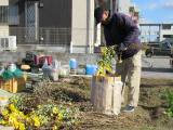 11月下旬から自宅に持ち帰り、町内の道路に置いたプランターにパンジーと一緒に植栽しています。下代公園の花壇に次々と移植しています。城山小学校に3ケース、城山コミセンに4ケースをプレゼントしました。