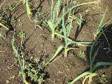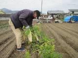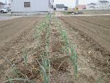 皮の表面が赤い品種です。移植作業は11月6日に終わりました。11月26日に草取りを済ませて肥料をまきました。1月14日に肥料。2月11日に肥料をまきました。2月16日に草取り完了です。生長が遅いので、収穫が遅れそうです。
