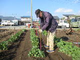 幅が広い畝だったので、翌日横に移動しました。肥料をまいたり草取りしています。ときどき収穫しています。1月14日に肥料。1月の寒波で元気がありません。2月に少しずつ収穫しています。2月21日に草取り完了。