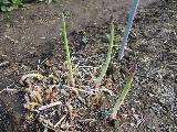 北D2(16坪) アスパラガスの根から芽が出始めました。畝は3列あります。
