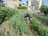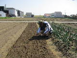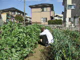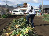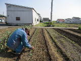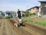 2月に空いている畝をすべて耕しました。3月に石灰と肥料をまいて、もう一度耕します。その後葉物野菜の種まきを始めました。