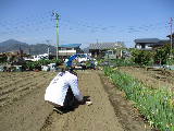 天気予報では20日が雨なので、急いで種まきしました。石灰と肥料をまいて耕したのです。