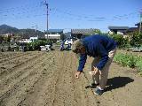 2月1日に畝2列を耕しました。3月15日に空き畝に石灰をまきました。