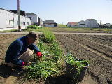 皮の表面が赤い品種です。移植作業は11月6日に終わりました。2月16日に草取り完了です。生長が遅いので、収穫が遅れそうです。3月9日に肥料。3月18日に草取り完了です。茎が大きくなりました。