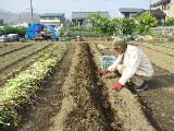 タマネギ 農区長からもらったタマネギ苗を植え付けました。早生品種です。畝D 10月23日植付け