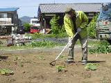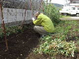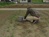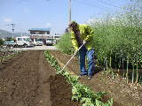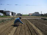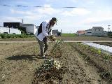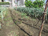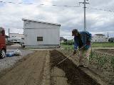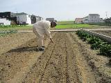 北B2(20坪) 畝は6列あります。1列に穴を掘って野菜くずの処理をしています。