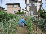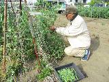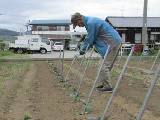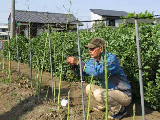 スナップで使ったネットを利用します。ツル性の野菜は、毎年同じ方法にしています。