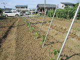 4月4日にヒロセで買った苗です。4月8日に支柱21本を立てました。4月9日にひもかけをしました。4月24日に肥料。