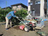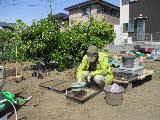 穴を掘ったときの土をここに集めました。種まき用と移植用の土にします。4月6日に培養土と畑の土を耕運機で混ぜました。