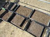 4月16日に育苗箱を使って、ニラの種をまきました。北B2の種が発芽しません。発芽しています。
