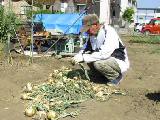 100本の購入苗は、600円でした。こちらは畝Dのタマネギよりも遅い生長です。3月9日に肥料。3月14日から収穫開始です。大きくなっています。4月上旬から収穫しています。4月18日にすべて収穫して乾燥させています。茎と根を切って持ち帰りました。