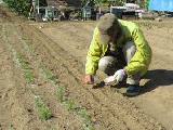 一つの畝に2列まきました。合計4列です。雨が降ったので4月13日に一斉に発芽しました。