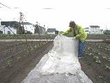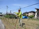 エダマメはカラスが喜んで食べます。それを防ぐためにネットを張りました。本葉が育てば被害はありません。4月20日に発芽を確認。少しずつネットをゆるめています。4月29日にネットを外しました。