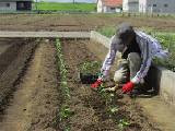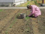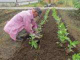 4月16日に育苗箱に種まき。6月5日にポットに移植。根が張ってきたので、6月20日にポット33個を畝に植付けました。6月25日に肥料。7月15日に肥料をまきました。順調に育っています。