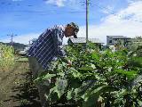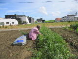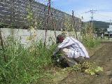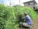 4月29日にネットを外しました。良好です。6月29日に初収穫。7月に入りどんどん収穫しています。届けるときは、根と葉を切り落とします。面倒な作業です。一人に8株ずつプレゼント。エダマメが大豆になってしまいました。7月24日にすべて引き抜きました。草刈りも完了。