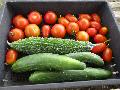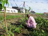 ナス・ピーマン・トマト・ゴーヤ・ニンジン・オクラ・エダマメは生長して、たくさん収穫しています。息子2人と近所に届けています。