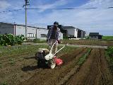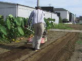 ここの畝6列にはすべてニンジンを予定しています。7月に石灰をまいて耕して種まきします。7月25日に空いている畝5列を耕しました。