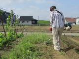 ニンジンの種まきは難しいです。雨が降ることを期待します。なんとか発芽しました。6月8日に肥料をまきました。ここも雑草が伸びています。