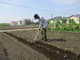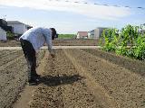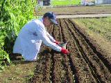 サニーレタス 耕運機で耕して、1列の種まきです。畝@ 9月5日種まき