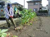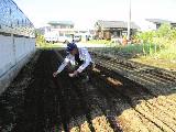 キョウナ 耕運機で耕して、レタスの隣に1列の種まきです。畝@ 9月5日種まき
