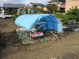 地主さんが植えたハッサクとパールカンが大量の実をつけています。台風対策のため、一度シートを外しました。8月26日に草刈りをしました。9月17日に接近した台風で、ハウスのブルーシートが破れました。ブルーシートを交換しましたが、古い物だからすぐに破れるでしょう。