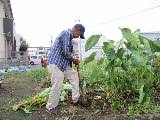 トマトの支柱2本が風で倒れ、ネットが悲惨な状態です。8月下旬から片付けていますが、なかなかはかどりません。面倒になったので、ネットと一緒にツルも処分します。9月15日にネットをはずしました。ネットは丸めて畑の隅に置きました。空いている畝は9月29日に耕しました。