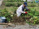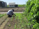 4月16日に育苗箱に種まき。6月5日にポットに移植。根が張ってきたので、6月20日にポット33個を畝に植付けました。雑草がすごいので、ニラと一緒に草刈りしました。すぐに芽がでるので大丈夫です。