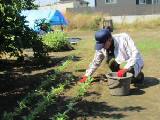 センニチコウ ポットで育てた花苗を移植しました。白とピンクをそれぞれ1列ずつです。畝@ 7月8日定植