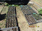 北A2(20坪) 畝は6列あります。ニンジンは失敗したので、葉物野菜の種まきをしています。