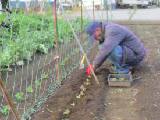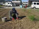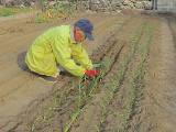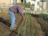 1束650円でした。店の人の話では3月に収穫できるということでした。2列に植えましたが、畝が余りました。
