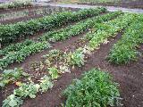 北A2(20坪) 畝は6列あります。葉物野菜の収穫をしています。草取りにがんばっています。