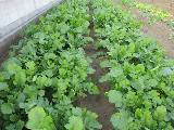 9月16日に発芽です。9月21日に肥料をまきました。10月14日に草取り完了。10月末から収穫開始。新芽を摘んで持ち帰ります。