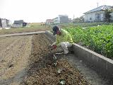 キョウナ 耕運機で耕して、レタスの隣に1列の種まきです。畝@ 9月5日種まき