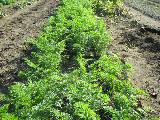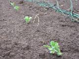 10月下旬に発芽しました。雨がまったく降らないので、心配していました。密植しているので、スナップやエンドウの横に移植をしています。11月13日に肥料。11月25日からここの苗を掘って、スナップの畝に移植開始です。その後エンドウの畝にも移植しました。