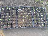 9月7日に育苗箱に種まきをして、9月末にポットに移植した苗です。大きく育った苗から植えています。