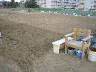 平成15年12月14日に新しく借りた畑です。12月の21日(日)と27日(土)に管理機で耕しました。さらに道具も移動させ、管理機が入りやすいようにしました。二つの畑の畝は、どちらも南北の方向にしました。その理由は、トラックが入る道が南側にあるためです。