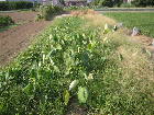 ジャガイモ 8月に入ってもまだ3列掘らずにいます。雨が降らないので腐りませんが、芽が出ているのが気になります。残りのジャガは、まてまて地蔵祭の景品にする予定です。ジャガを掘った後は、ここにエンドウとソラマメを植える予定です。(2月14日定植)