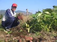 カライモ 10月23日に試し掘りをしたら、大きいのが取れました。嬉しかったですね。畝は1列だけですから、少しずつ掘ることにします。10月30日にも掘って、庭で焼き芋にしました。カライモの栄養は、ビタミンブー。(6月3日定植)