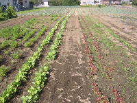 平成14年11月に畑を借りて、一年半が経過しました。このページは平成16年10月の記録です。これまでの畑を「西」に、新しい畑を「東」としています。さらに畝の番号も西側から1・2・3・4とします。面積は80坪×2=160坪程度です。