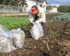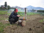 ほとんどが空き地のようになっていますから、ここで草を焼いたりしました。12月18日には大きな穴を掘り、野菜くずを埋めました。上の写真はかまどに火をつけ、寒さ対策をしているところです。