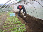 キョウナ ハウスの中を耕し、クマモトキョウナの種をまきました。熊本地方の正月の雑煮に使用します。(11月3日種まき)