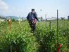 ピーマン 4列92株のピーマンは、6月中旬から収穫をしています。一度に取れる量は、大きなビニ袋一杯になります。ここも油断したため、雑草が茂っています。何とかしなければなりません。写真は収穫ではなく、草刈りをしているところです。(4月9日定植)
