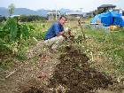 ジャガイモ 掘り残したジャガは、そのまま秋ジャガになってしまいました。半分が残ったままです。休日が忙しいと、このようになりますね。少しずつ掘り始めましたが、ジャガは小さいです。