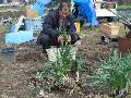 花の苗 花はキンセンカとゴデチャ、そして帝王貝細工です。切花ですから、咲いたら学級用にもって行きます。冬休みに入り、支柱を立てました。2月にはキンセンカの花が咲きました。6月には種取りをします。(11月19日定植)