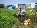 ジャガイモ マルチで育てたジャガイモは、順調に育ちました。5月26日に試し掘りをしたところ、大きなイモが入っていました。6月中にはすべての収穫を終りました。今年は豊作で、しかも質もいいようです。(2月3日植え付け)
