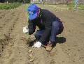 ジャガイモ 畝4列にジャガイモ10kgを植え付けました。昨年よりも遅くなりました。少し不足しました。一列に3kg必要と思われます。来年は12kg準備します。(2月16日植付け)
