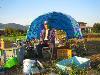 パイプを継ぎ足して、屋根を50cmほど高くしました。道具の収納も楽にできて、雨宿りも可能です。夏は休憩しやすくなるでしょう。
