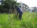 西1 草を取りつつ、野菜苗を植えています。