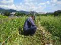 カライモ ツルが元気よく伸びています。しかし、雑草と勝負しています。おまけにコオロギが葉を食べています。(5月31日定植)
