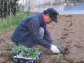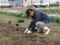 この畑は道路沿いなので、道行く人のために花を植えています。11月末に植えたスイセンは、白の花で、すでに葉だけになりました。